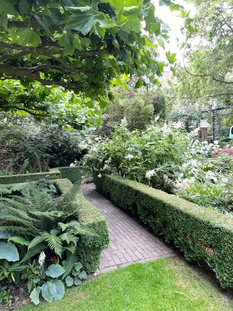 Am frühen Nachmittag erreichen wir unser erstes Ziel. Der Garten besticht durch seine großzügige und ausgewogene Gestaltung mit überraschenden Sichtachsen.